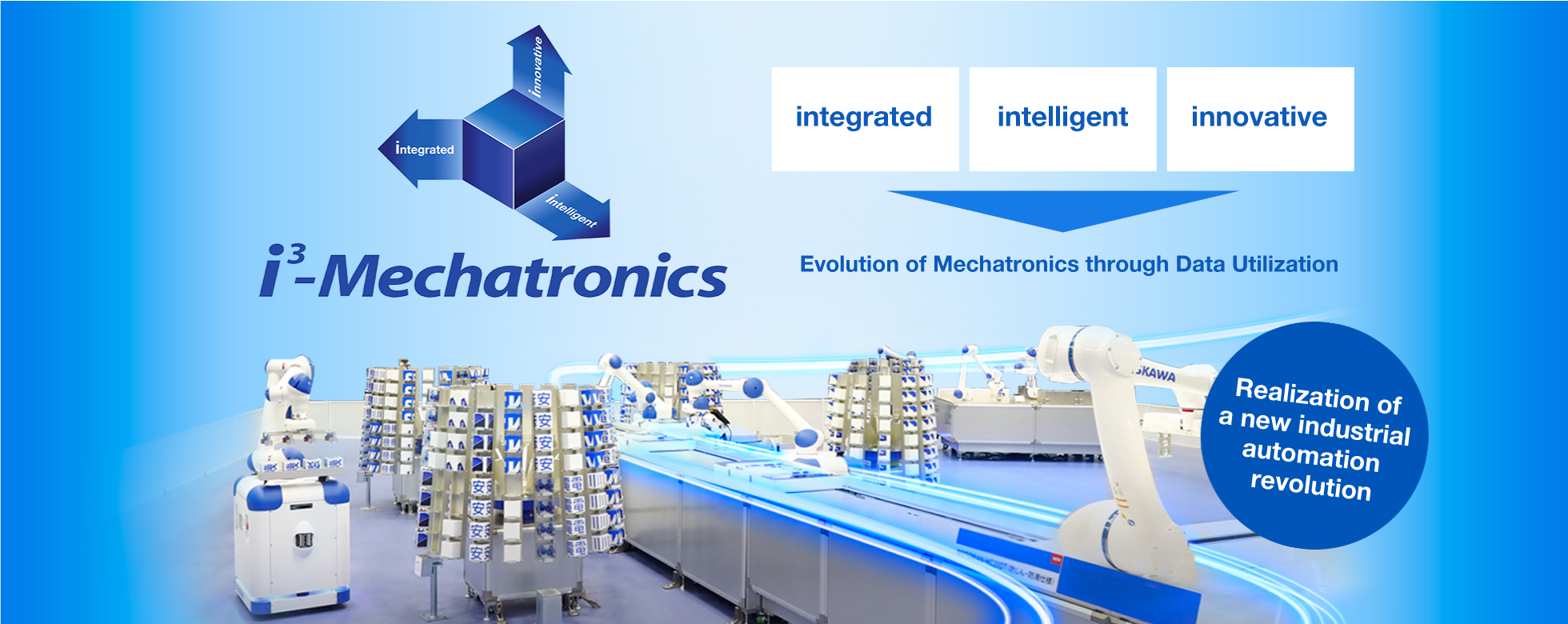 The term “”IoT” or “industrie 4.0” has come to be used in a broad meaning in recent years because of advances in telecommunications technologies, and many things such as automobiles, factories, and home appliances are connected digitally. Yaskawa promotes i3-Mechatronics as a solution concept in response to such trends in IoT and industrie 4.0.